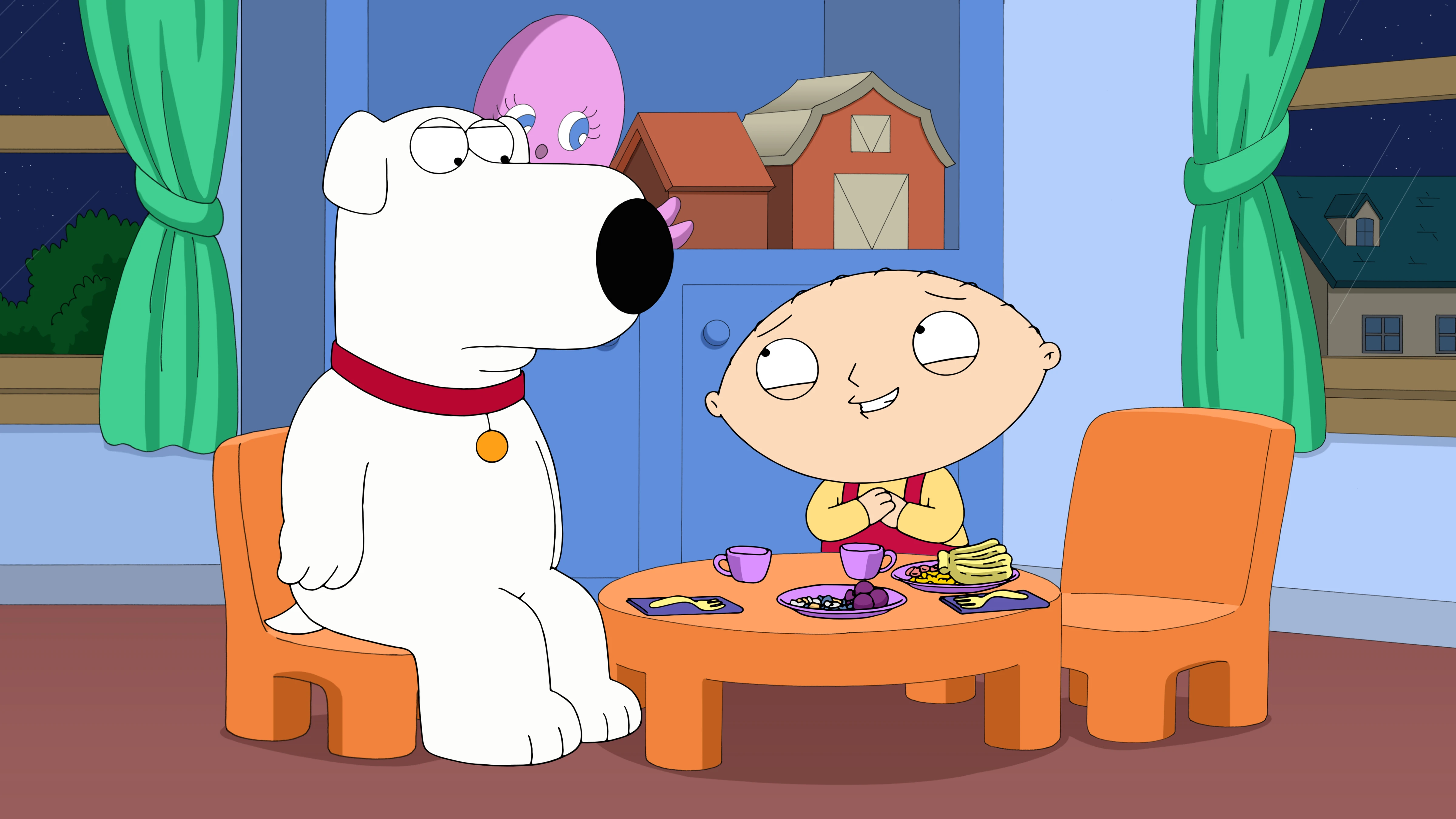 | Stewie fühlt sich von Brian vernachlässigt und lässt sich etwas ganz Besonderes einfallen, um ihre Beziehung zu retten: Mithilfe von DNA und einer selbstgebauten Maschine wird er schwanger von Brian.(ProSieben Fun)
