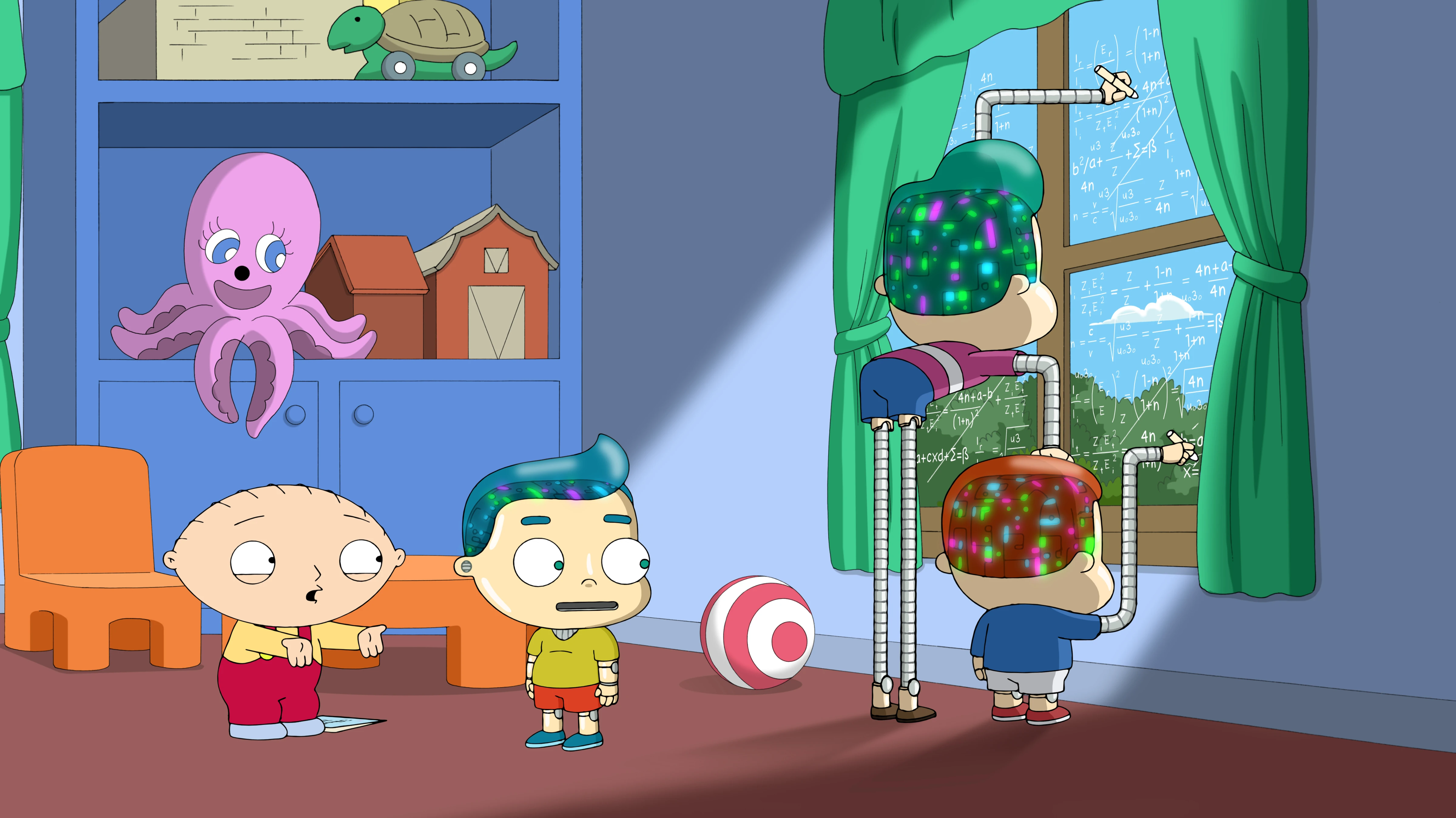 Bei Stewie wird ADHS diagnostiziert, er bekommt deswegen Tabletten, die ihn beruhigen. Als Brian erfährt, dass dieselben Tabletten aber bei anderen Menschen auch aufputschend und kreativitätsfördernd sein können, fängt er an, die Tabletten zu nehmen und steht schon bald gehörig unter Strom ... | |||||