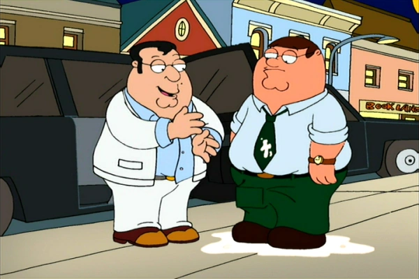 | Gegen Lois besseren Rat lässt Peter sich von einem zwielichtigen Verkäufer ein Auto andrehen, was sich schon bald als Fehler heraus stellt. Als er seinen Kummer darüber in der Bar ertränken will, trifft er dort auf einen bekannten Mafioso, der ihm bei seinem Problem helfen will, wenn Peter im Gegenzug dessen Neffen Paulie mit ins Kino nimmt. Peter und Paulie verstehen sich blendend und Lois macht sich Sorgen um eine zu enge Verbindung zur Mafia. | |||||