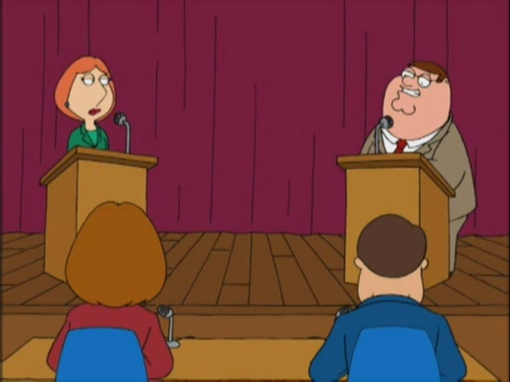 | Lois möchte Präsidention des Schulvorstands werden, hat dabei aber nicht mit ihrem verrückten Ehemann gerechnet. Obwohl Peter mit solchen Aufgaben nichts am Hut hat, lässt er sich aus Eifersucht als Gegenkandidaten aufstellen. Tatsächlich kann er die Wahl für sich entscheiden, doch wie jeder Politiker hat auch Peter ein paar Leichen im Keller, die seine Karriere gefährden... | |||||