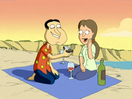 | Brians schwuler Cousin Jasper kommt nach Quahog, um im Hause der Griffins seine Hochzeit zu feiern - mit Ricardo! Lois ist ein bisschen skeptisch. Doch gerade schickt sich Bürgermeister Adam West an, gleichgeschlechtliche Ehen zu verbieten. Er will so geschickt von seiner miserablen Finanzpolitik ablenken. Brian sammelt Unterschriften und will eine Petition für schwule Ehen einreichen ... | ||||||||||||||||||||||||||||||||||||||||||||||||||||||||||||||||