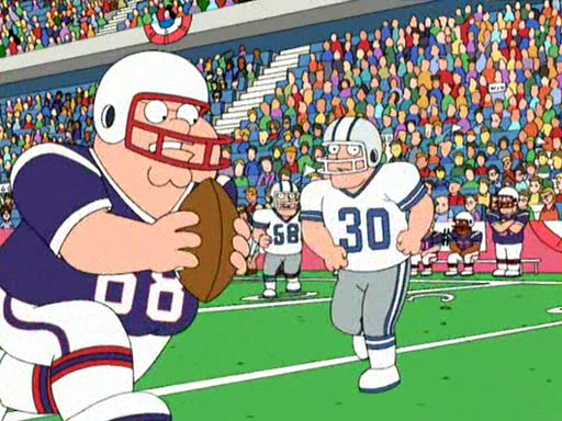 | Peter wird ein Spieler der "New England Patriots" nach Zurschaustellung seines Könnens. Doch Tom Brady fühlt sich durch die Showeinlagen von Peter genervt, woraufhin er ihn feuert. Währenddessen eröffnet Stewie ein Wettbüro. Nach einer verlorenen Wette schuldet Brian ihm Geld, welches er in 24 Stunden auftreiben muss. Als er das aber nicht schafft, wird er von Stewie brutal angegriffen ... | ||||||||||||||||||||||||||||||||||||||||||||||||||||||||||||||||