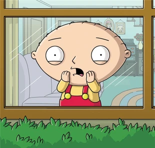 While stopping off at the ruins of the World Trade Center to pay respects, the rest of the family realizes that they left Stewie behind in Quahog. They call Cleveland and Quagmire to babysit him. As soon as they come in to the house, Stewie believes they are intruders and knocks them out with a noxious gas but, discovering their true identities, he chains them to the basement wall and force them to watch the 24-Hour DirecTV help channel. When Stewie eats up all the food in the house, he gets a job at McBurgertown, but is fired for eating food on the job.