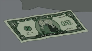 Carter Pewterschmidt gives Chris a rare one dollar bill for his birthday in "Follow the Money" that features Ben Franklin and George Washington together. Chris angrily tosses it aside where it passes through a variety of hands in Quahog, before finding out that it is rare and he and Carter go in search of it, eventually recovering it in a strip club.