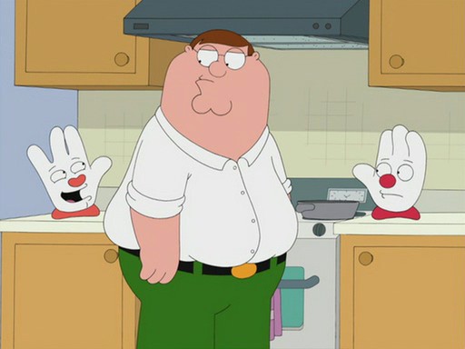 The Hamburger Helper Helping Hand appears with his mentally retarded brother Cheeseburger Helping Hand in "Business Guy". Hamburger Helper hand got his brother a job as the Cheeseburger Helper mascot as a way to take care of him. Peter Griffin remarks that Cheeseburger Helper is pointless since he could just add cheese to the normal stuff, which the hand angrily says isn't the same.
