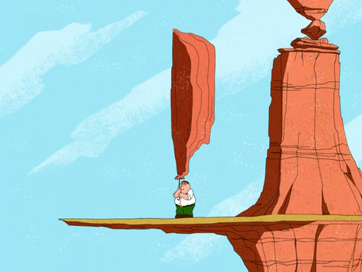 Luke Skywalker, played by Chris Griffin, has a typical Wile E. Coyote fall during his duel with Darth Vader, played by Stewie Griffin, in Something, Something, Something, Dark Side. He holds up a "HELP" sign, and then his body from the neck down droops before his whole body falls.