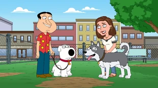 During trick-or-treat night, Quagmire meets a woman escorting her niece around and hits it off, but during a breakfast date, he discovers that she's a dog lover and he finds himself trying to pose as one as well. After briefly considering buying one, he approaches Brian about posing as his dog, and, after Brian enjoys a good laugh at his expense, agrees to it in exchange for six tennis balls. As Quagmire worries about Brian acting like a real dog, the latter admits he's really just waiting to see Quagmire crash and burn. He decides to help things along when Quagmire insists that she's the one by presenting an engagement ring to her, and she accepts. After the initial shock, Quagmire seems to accept the news well until she moves in with all of her rescue dogs, causing the fur to fly. During their engagement dinner party, Quagmire accidentally uses the word 'walk' and causes a stampede. With the party ruined, Quagmire finally reaches his wits end and admits he really hates dogs, breaking up the relationship over his lie. He vows revenge on Brian and goes for a walk, leaving him alone in the house.
