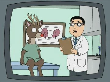 When Stewie finds out that he will only become 5'1" as an adult, he worries about becoming an outcast like "Rudolph the Uncircumcised Reindeer" in "Papa Has A Rollin' Son". Santa tries to reassure him, but takes umbrage that Rudolph consulted with Mrs. Claus who disapproves of him being circumcised.