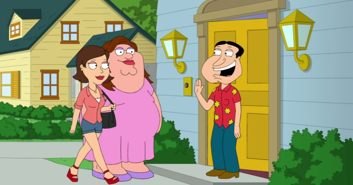 When Peter tries to provoke people who he believes can't hit him when he starts to identify as a woman, he insults Sully Sullenberger to Quagmire, Quagmire is angry at first, but calms down, noting that no one else respects women like he does. As Sherry arrives, he instructs her to get in the chimney so he can spit down it for her.