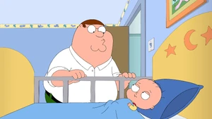 When Lois goes out with Bonnie, she tells Peter to take Stewie to the park. Bored, Peter decides to sneak off to The Drunken Clam, but when Lois calls him at the bar, he rushes out to grab him and takes the wrong child. Arriving home, he realizes he took the wrong child but has to pretend he is when Lois arrives home. He tries to cover things up but Lois finds out just as another woman arrives with Stewie. Peter tries to gloss things over but Lois calls him an idiot, hurting his feelings.