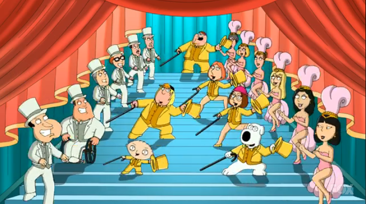 Entire Family, although Stewie mumbles through his lines and his dancing is off: On which we used to rely?